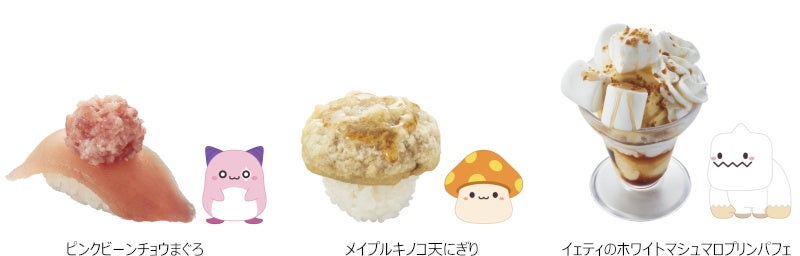 かっぱ寿司の対象店舗にて、『メイプルストーリー』のキャラクターをモチーフにした、3種類のコラボ商品を販売いたします。