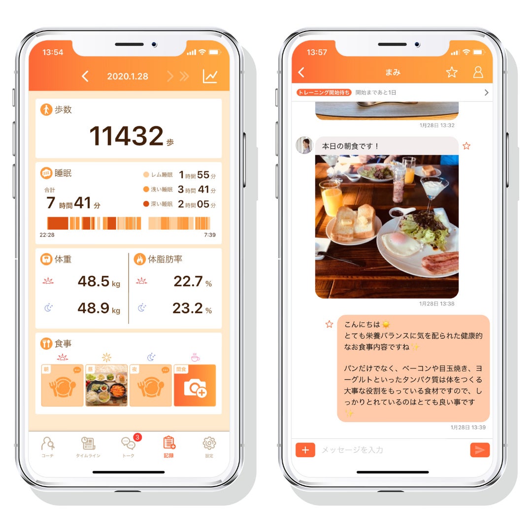 来店していただけるお客様に対して、ボディケアの提供に加え、アプリを用いて食事や睡眠など日々の健康に対するお悩みの解決をセラピストがサポートをいたします。