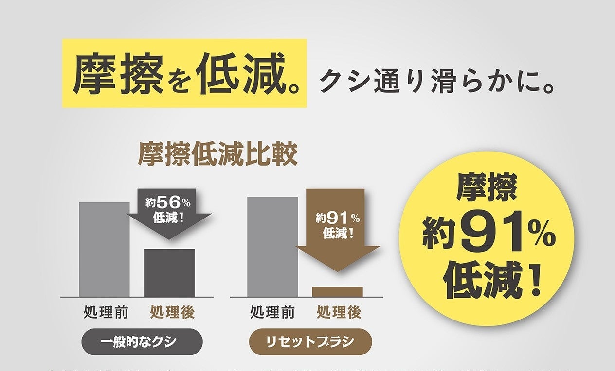 【試験方法】毛束をブラッシングした際の摩擦を使用前後で測定比較。