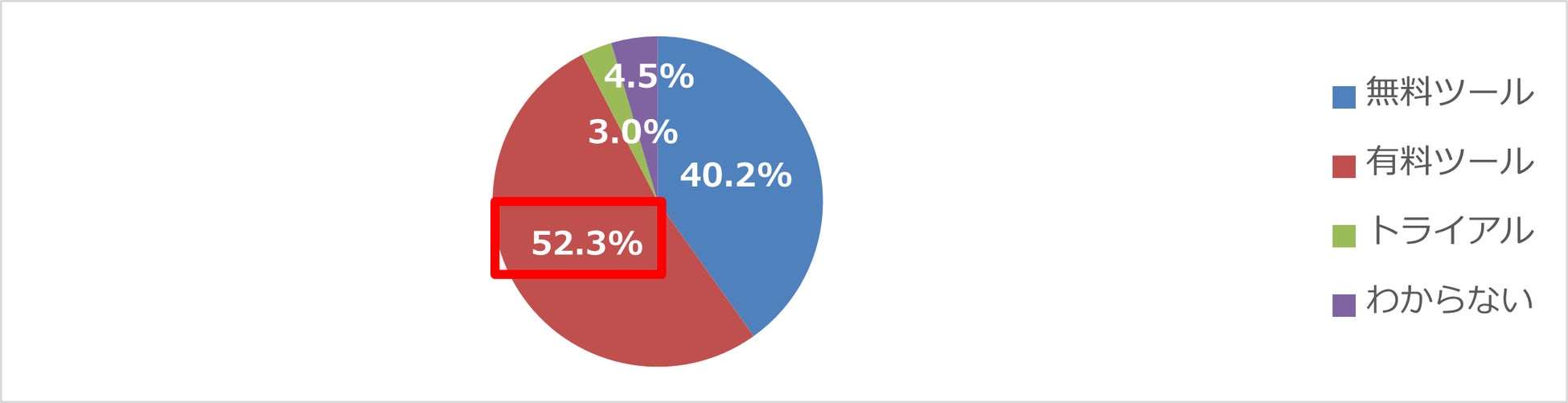 <結果②>「有料版」の回答は52.3%(69人)、「無料版」は40.2%(53人)、「トライアル」が3.0%(4人)、