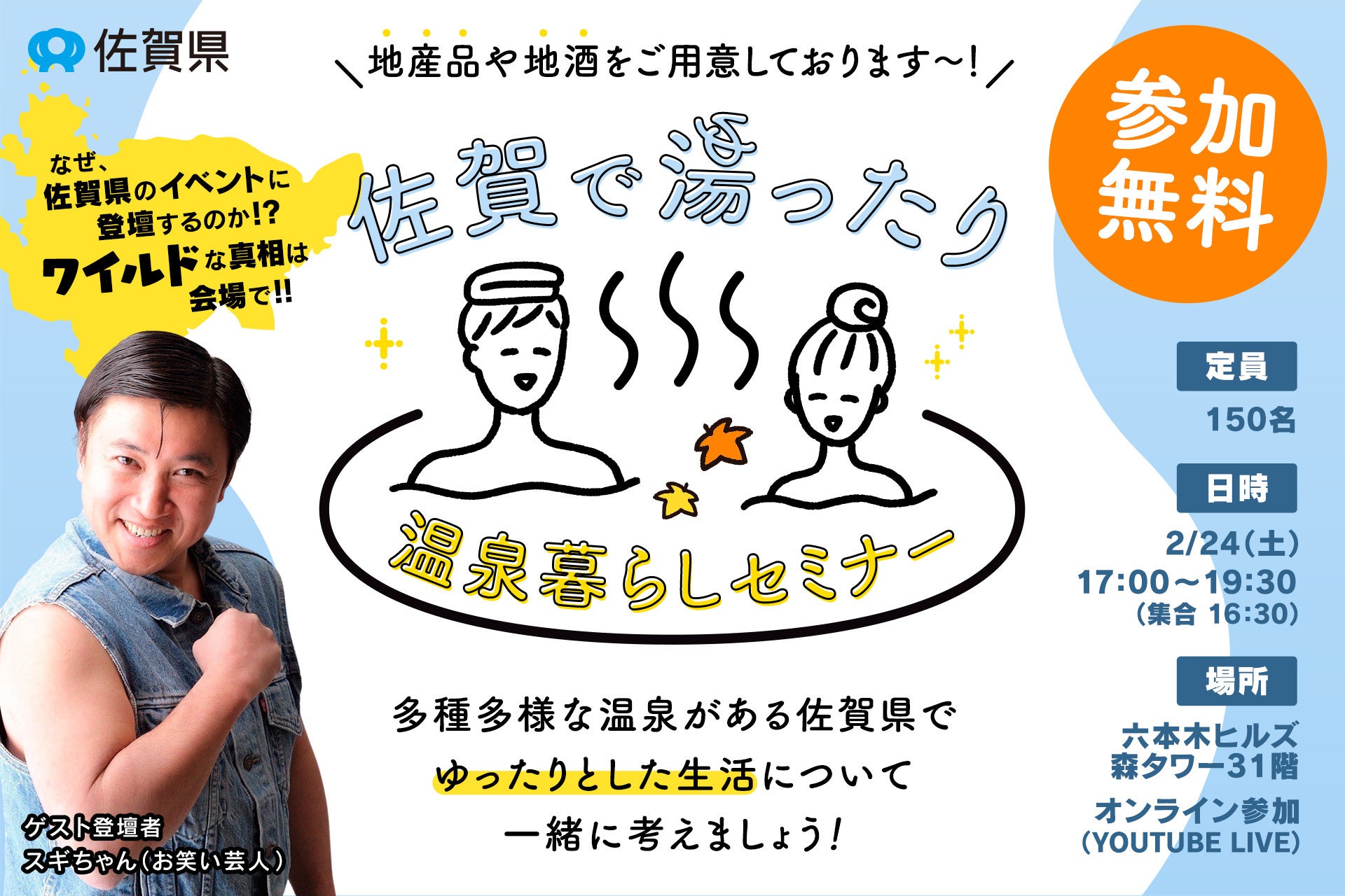 佐賀移住イベント『佐賀で湯ったり温泉暮らしセミナー』を2/24(土) 17:00より六本木ヒルズにて開催決定!