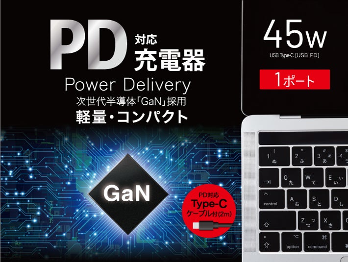 本商品は、次世代半導体「GaN(窒化ガリウム)」を採用し、小型・軽量化を実現したUSB PD(Power Delivery)対応ACアダプターです。隣接するコンセントにも干渉しにくいスリムサイズ設計で、普段からパソコンを持ち歩く機会が増えた学生にも邪魔にならず、快適にお使いいただけます。また従来モデルよりもエネルギー効率を良化したモデルとして、SDGsの取組にも貢献できるものと考えております。