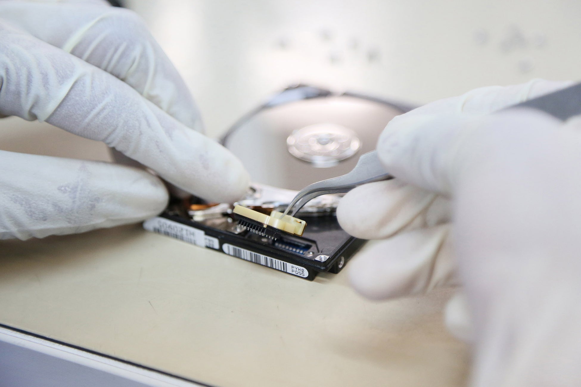 ①物理チーム:表面に傷のついたHDD・ヘッド破損などの物理的破損を修復します。
