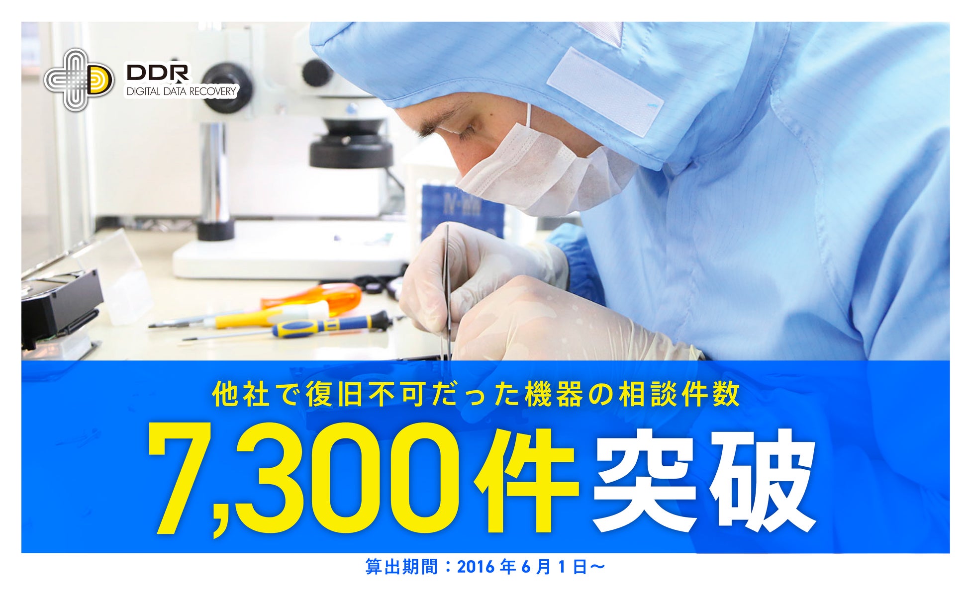 データ復旧サービス「デジタルデータリカバリー」他社で復旧不可だった機器の相談件数7,300件を突破