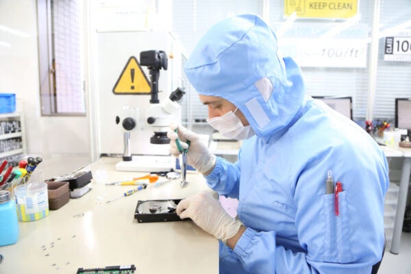 デジタルデータリカバリーでは、国内最大級のデータ復旧ラボを公開しています。ご来社いただいたお客様は、データ復旧ラボの最先端の復旧設備や、プロのエンジニアの復旧作業の様子をご覧いただけます。
