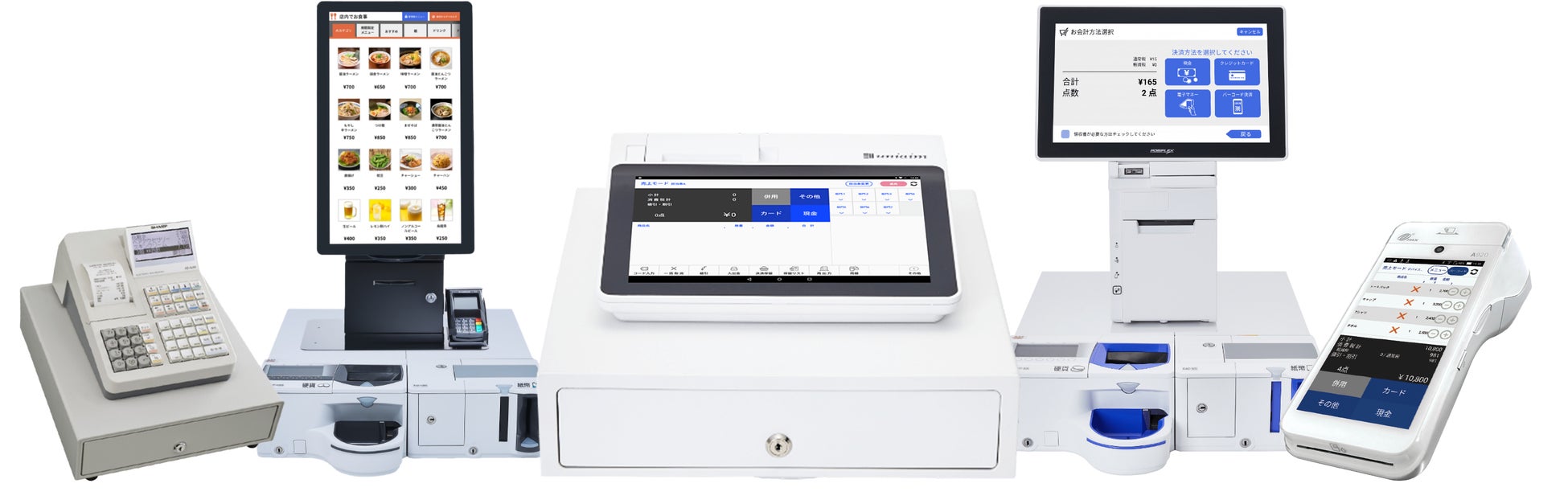 簡易レジから最先端のセルフレジやタッチパネル型券売機などの端末もラインナップ