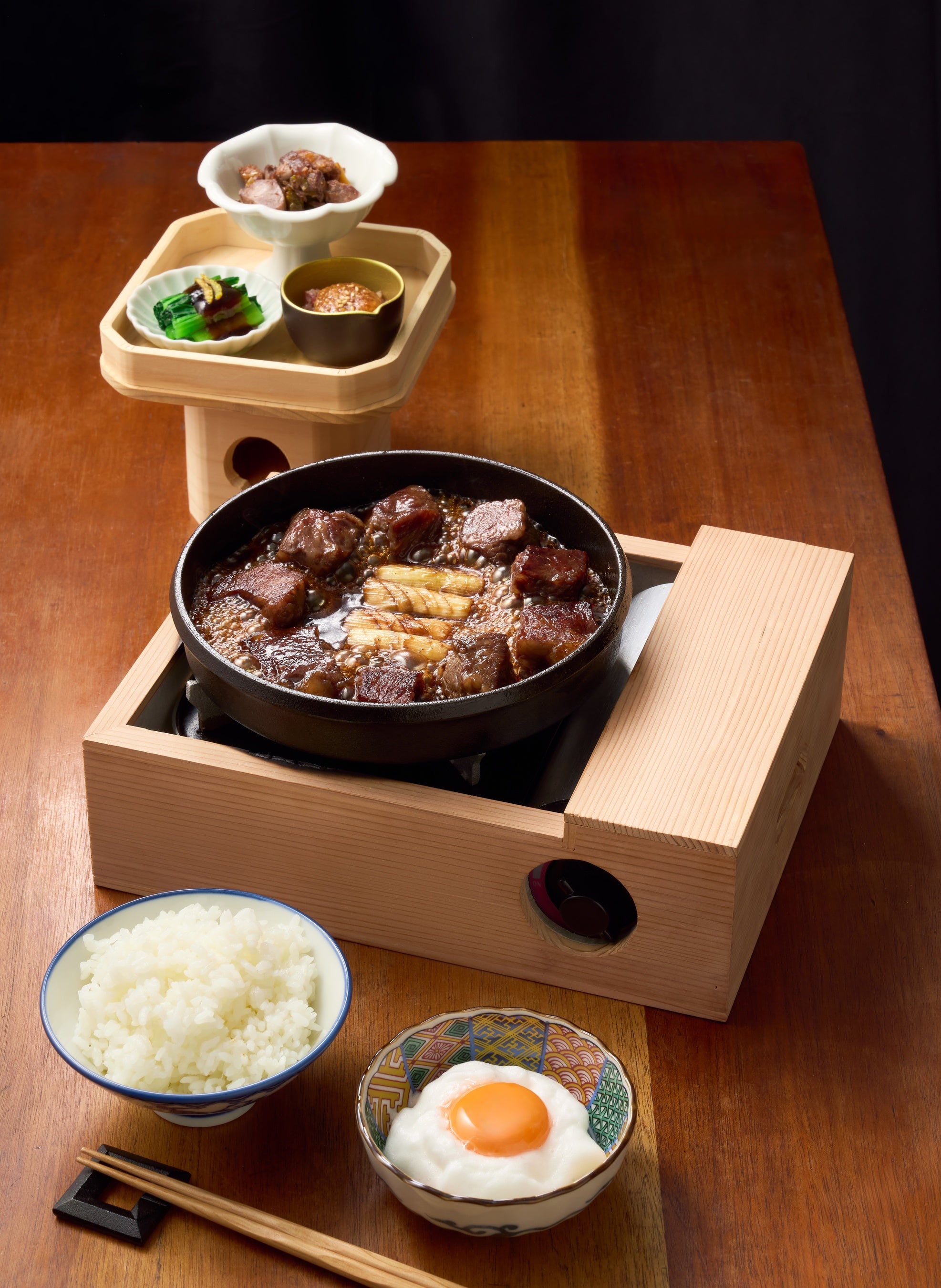 当時と同様に召し上がっていただけるように、南部鉄の浅鍋を使用した牛鍋を提供いたします。