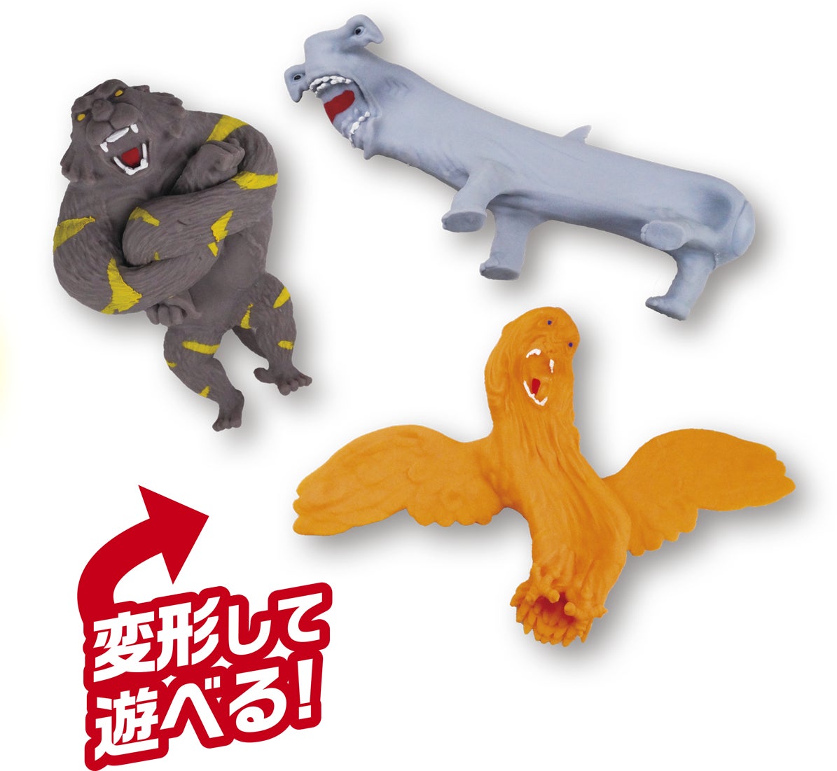 超“のび~る”特長に加えて自由に形を変えられるフィギュアのモチーフは、“ズータント星”と呼ばれる惑星で進化を遂げた、「野獣x野獣」が合体したユニークな生物。 全16種のフィギュアは、ひねったりつぶしたり、腕を組ませたり、自由自在に変形可能。パンチやキックでお友だちと一緒に“ズータント星” の戦闘を楽しむこともできます。
