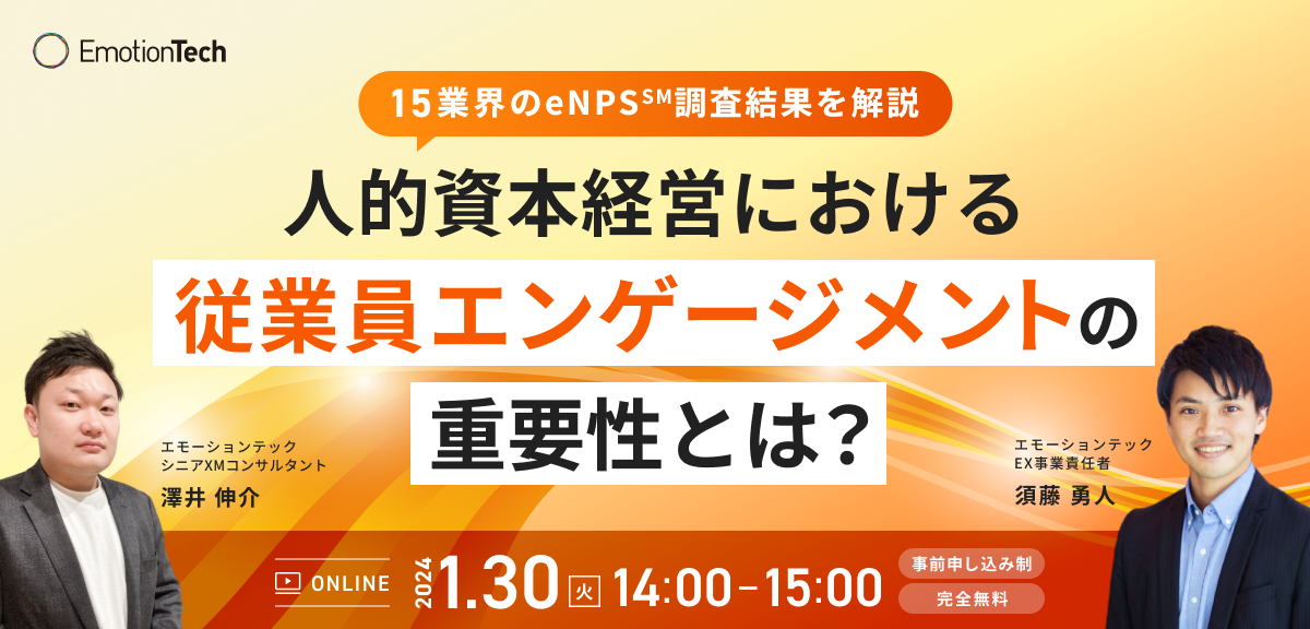 1月30日(火)オンラインセミナー「人的資本経営における、従業員エンゲージメントの重要性とは?」開催