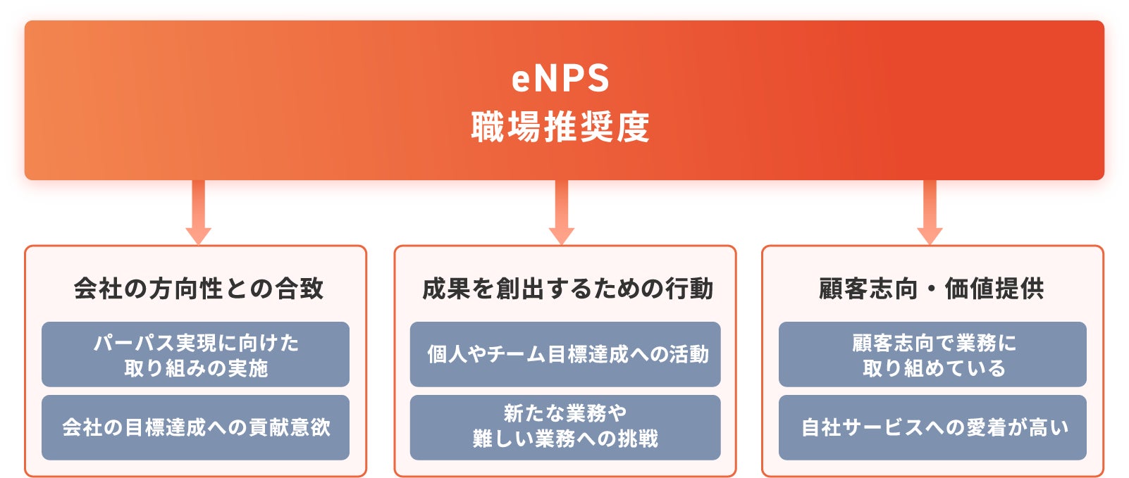 (※1)eNPS℠とは…「Employee Net Promoter Score(エンプロイー・ネット・プロモーター・スコア)」の略。従業員エンゲージメント(企業に対する愛着・信頼の度合い)を数値化した指標。「現在の職場で働くことを親しい友人や知人にどの程度おすすめしたいと思いますか?」という質問に0~10の推奨度から回答してもらい、9・10を選択した推奨者の割合から0~6を選択した批判者の割合を引いて算出する。