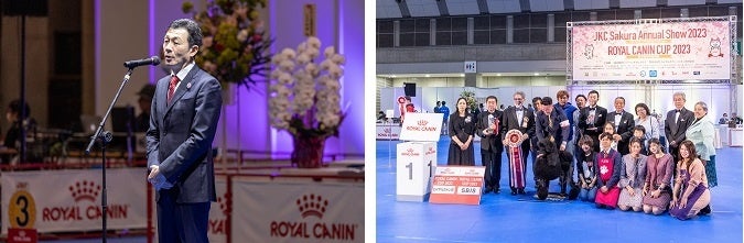 「ロイヤルカナン・カップ2023」の開会式に登壇したロイヤルカナン ジャポン社長の山本俊之は、「様々な犬種の育成と普及に努めてこられた歴史ある特別展に、今年も冠スポンサーとして携われることを大変光栄に存じます。犬の真の健康を実現するためには、ブリーダーをはじめとした専門家の皆様からペットオーナーまで、犬を取り巻くすべての方々が、正しい知識を持って適切に行動していただく、そのような環境づくりが重要です。ロイヤルカナンは引き続き支援を続けるとともに、専門家の皆様との連携を強化して参ります」と、犬を取り巻く環境の更なる向上に今後も尽力する決意をお伝えしました。