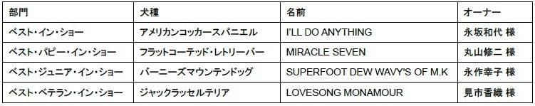 <各部門のトップ受賞犬>
