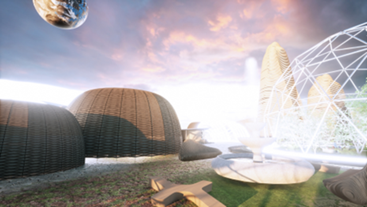 当社は新たな挑戦として、火星での住宅建築プロジェクトを目指してまいります。これまでの宇宙探査プロジェクトとは一線を画す、画期的かつ持続可能なアプローチを採用。火星現地にある素材を使って3Dプリンターによる住宅建築を目指してまいります。