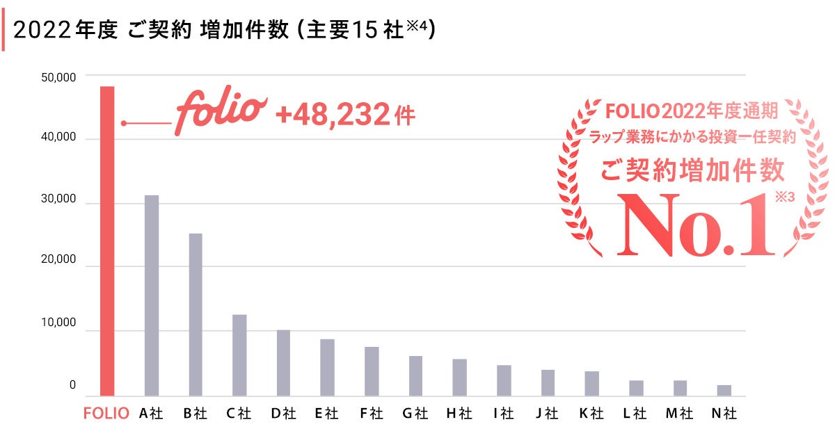 ROBOPROは2020年1月のサービス提供開始から約3年半が経過し、金融庁が公表したロボアドバイザーの過去3年のパフォーマンスでも第1位となる(※2)などの実績を残してまいりました。またFOLIO社としても、2022年度通期での投資一任契約増加件数が第1位となりました。(※3)