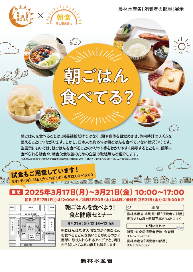 農林水産省「消費者の部屋」×朝食向上委員会(仮)、「朝ごはん食べてる?」をテーマに展示 〈3月17日~21日〉