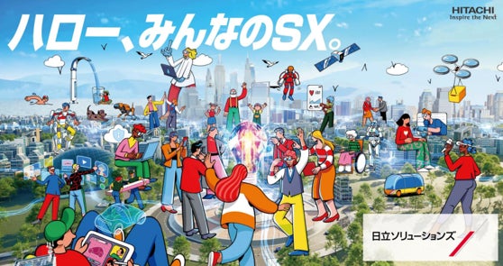 日立ソリューションズのSX(サステナビリティ・トランスフォーメーション)のもと、この作品では未来都市を舞台にイラストを用いて希望に満ちた楽しい未来像を描きました。無限の可能性を秘めたこの分野を、多くのシーンで表現することで、持続可能な社会の魅力的な未来を表現しています。