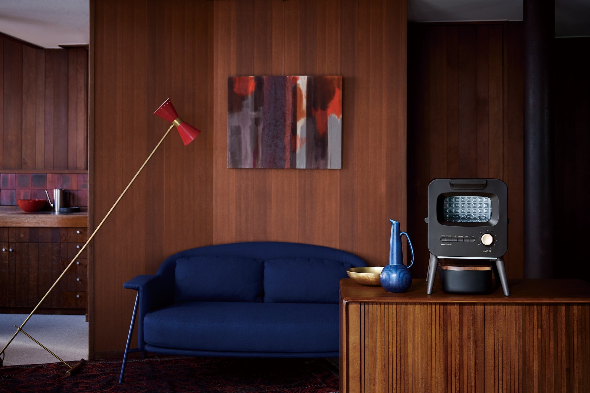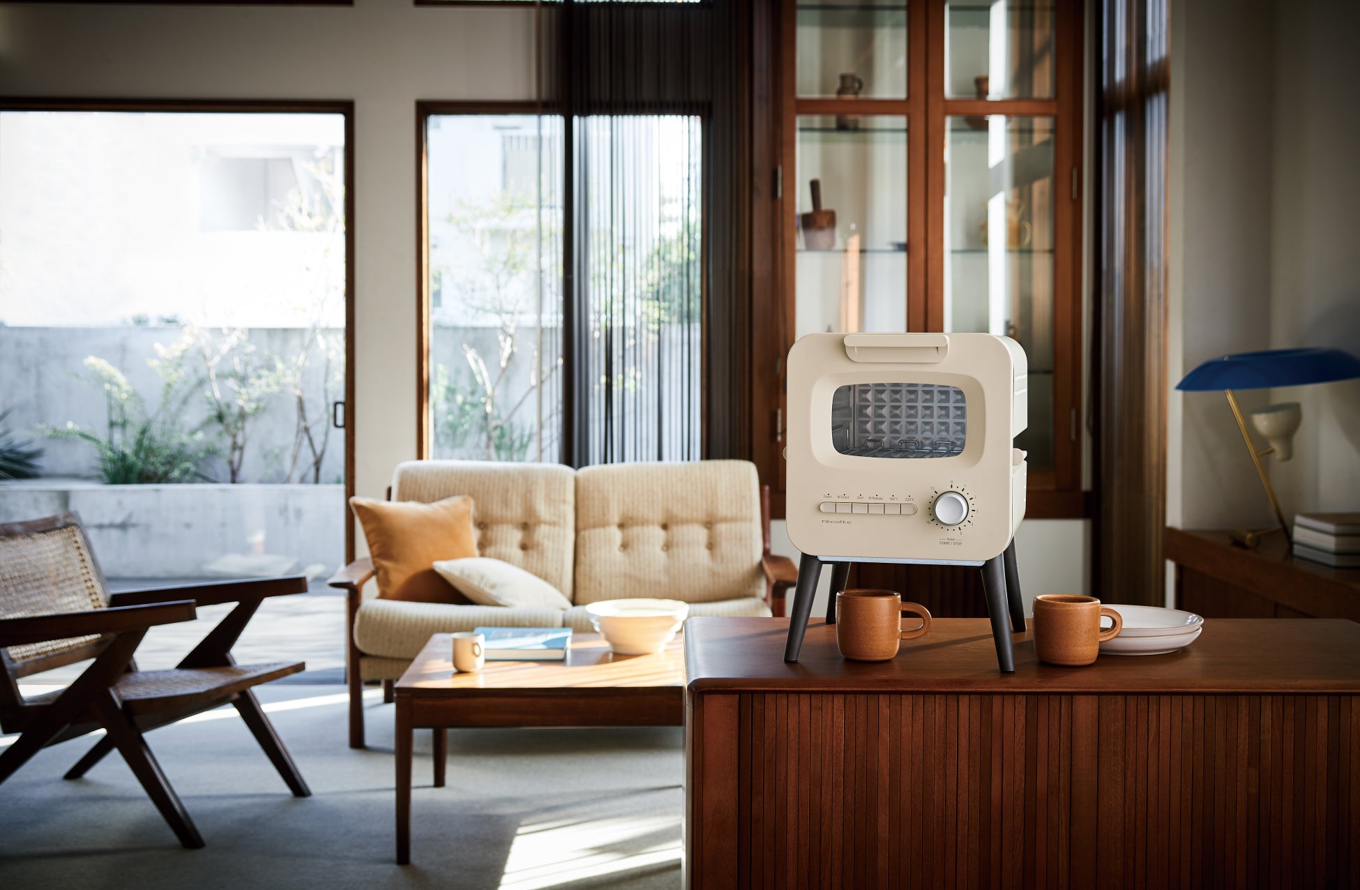 脚付きのトースター。思わずリビングに置きたくなるそのデザインは、家具との調和を考えたぬいた結果。キッチンにいることに縛られず、どこにいてもサマになるトースターになりました。ライフスタイルやお好みで、自由に置きたいところに置いてください。