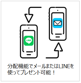 ※分配機能とは購入しメールで届いた「電子食事券」を、家族や友人へメールまたはLINEを使って引き渡しができるサービスです