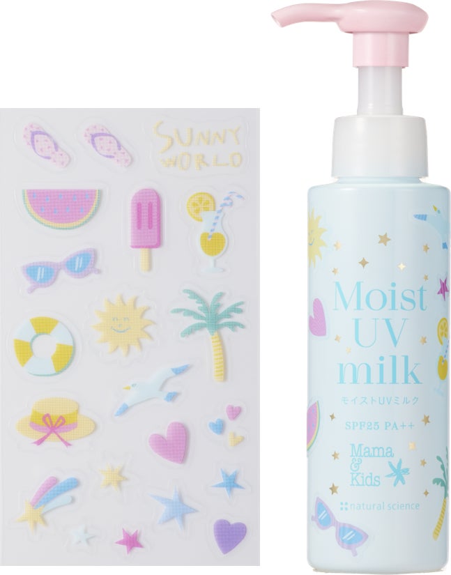 低刺激スキンケアメーカー、株式会社ナチュラルサイエンス(所在地:東京都中央区、社長:小松令以子)は、新生児から敏感肌の大人まで使えると人気の「ママ&キッズ」ブランドから、幼児期の子どもたちに向けて“自分の手で「かわいい」を作って欲しい”、そんな願いを込めてこだわり尽くした敏感肌フェイスケア「ドリームデザインボトル」シリーズを展開しています。そして今回新たに顔・ボディ用低刺激ノンケミカルUVミルク「ママ&キッズ モイストUVミルク(ドリームデザイン)」(SPF25/PA++) を、2025年6月12日から新発売いたします。