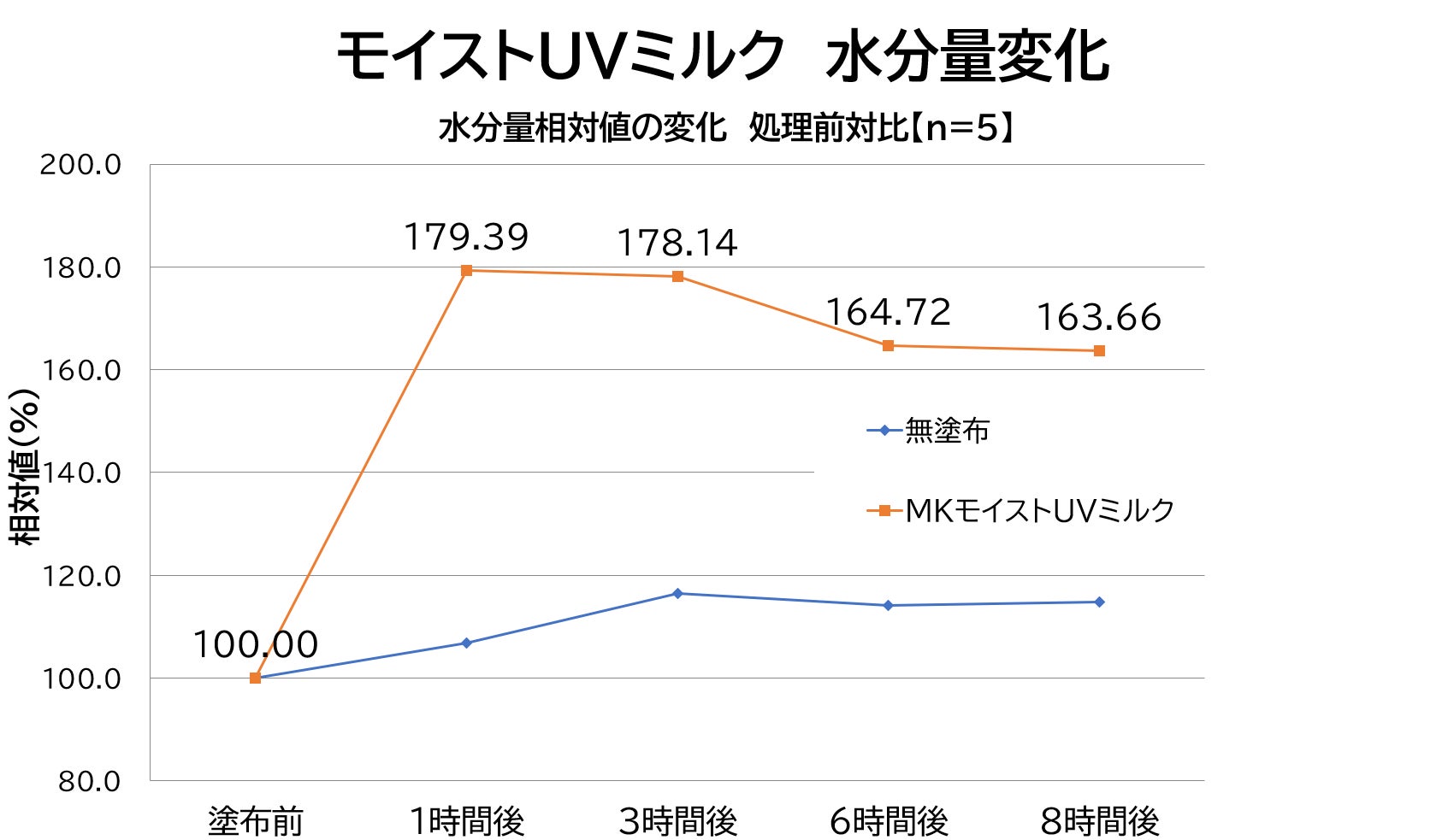 ママ&キッズ モイストUVミルク 水分量変化と水分蒸散量変化のデータ