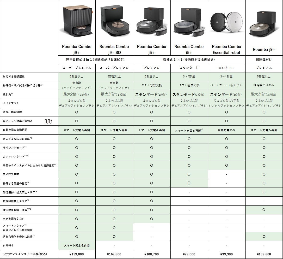 「Roomba Combo j5+」と「Roomba Combo i5+」はダスト容器の交換だけで水拭きが可能になる画期的な交換式2 in 1モデルです。物体認識・回避*1の機能が付いたプレミアムモデルである「Roomba Combo j5+」と、スタンダードモデル「Roomba Combo i5+」がランナップに加わり、Roombaはすべての価格帯において水拭きができる2 in 1 モデルが展開されることとなりました。また、Roomba全体のラインナップもシンプルに再編成され、ユーザーそれぞれのライフスタイルに合わせた機種を分かりやすくお選びいただけるようになりました。