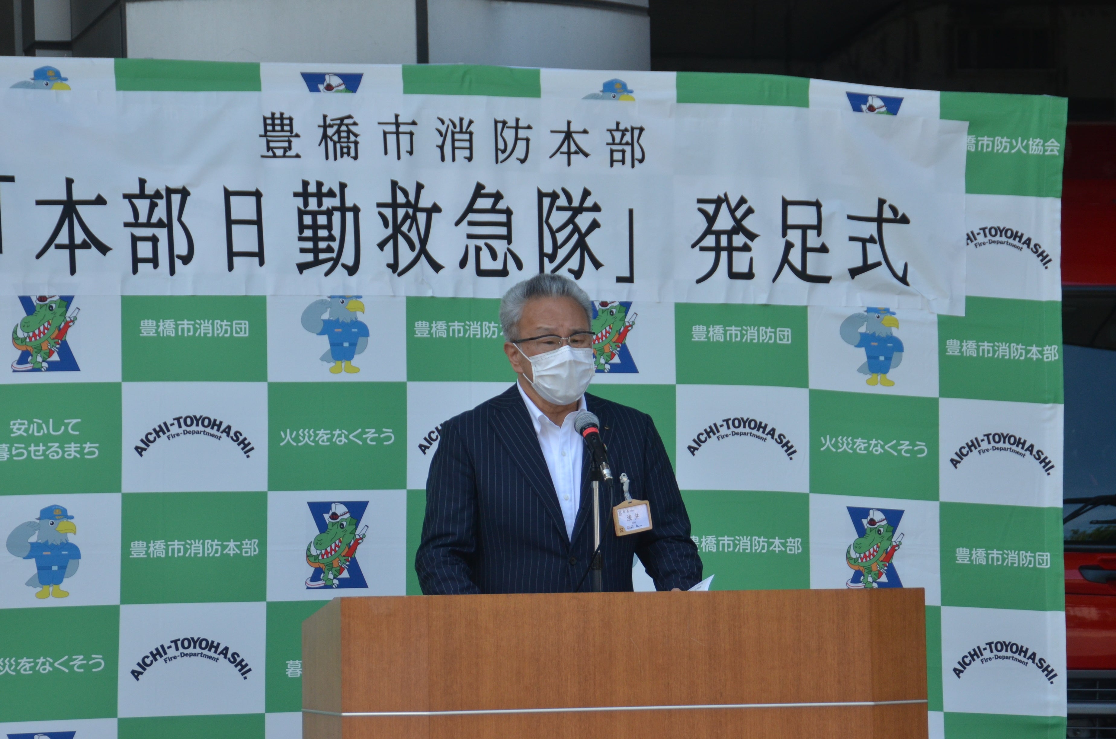6月30日には、本部日勤救急隊の発足式が中消防署で開かれました。小清水宏和消防長が発足宣言をした後、浅井由崇市長が「命の安全、心の安心が確保されたまち豊橋として、持続可能な救急体制を目指します」とあいさつ。市議会の堀田伸一議長らも、日勤救急隊の活躍に期待を寄せていました。