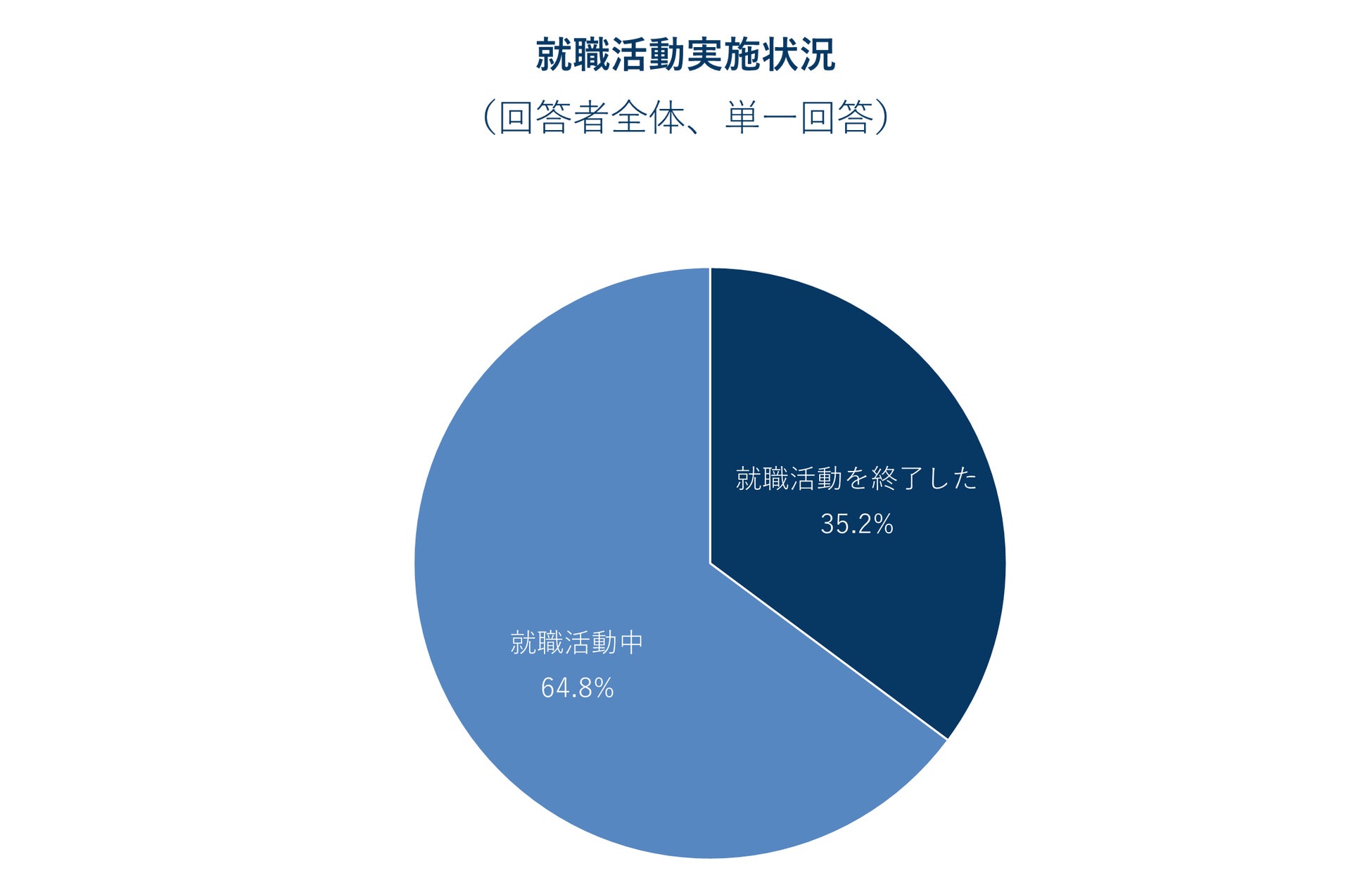 2025年3月時点で、回答者全体のうち約3人に1人が「就職活動を終了した」と回答。