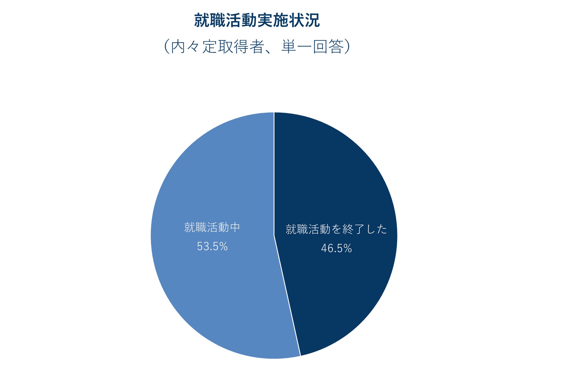 また、内々定取得者では半数弱が活動終了、半数強は引き続き活動を継続している。