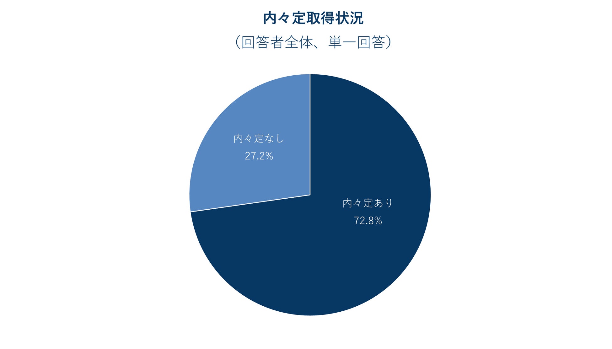 現時点で内々定を獲得している学生の「入社予定先」と「就活初期の志望業界」については、7割以上が「同じ」と回答しており、大半の学生は就活初期に志望した業界群の中から企業選びを進めていると見られる。