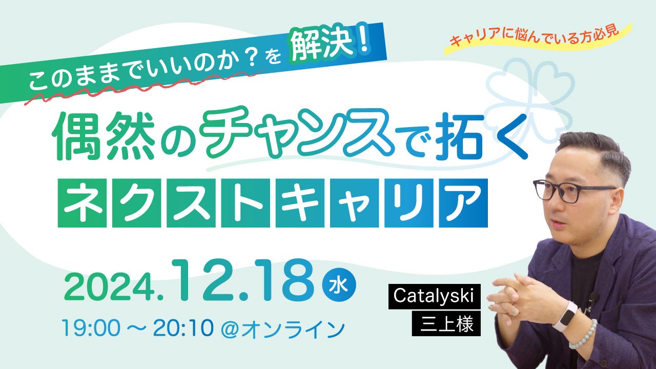 【キャリアに悩んでいる方必見】このままでいいのか?を解決!偶然のチャンスで拓くネクストキャリア、12月18日開催。自己成長応援メディア『学びのオツマミ』初回オンラインイベント