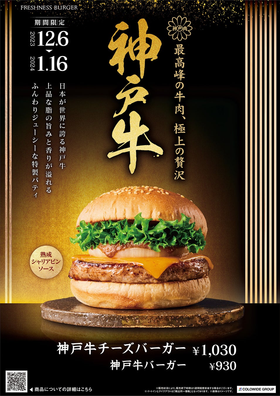 【神戸牛バーガー】【神戸牛チーズバーガー】2023年12月6日(水)~2024年1月16日(火)の期間限定