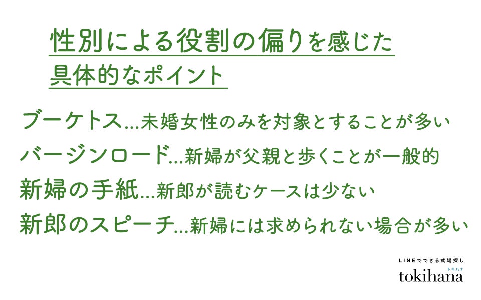 ・結婚式を挙げた女性の59.7%が自身の結婚式で、性別による役割の偏りを感じたと回答