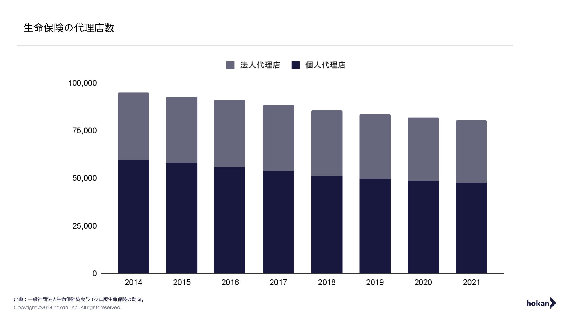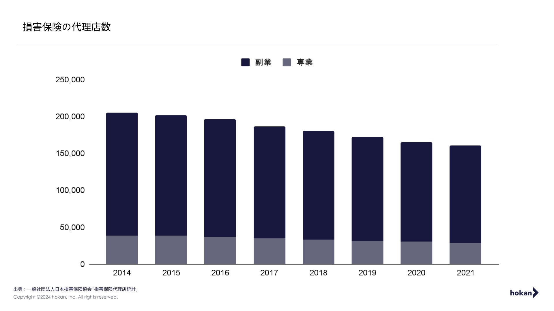 しかし、近年では、経営者の高齢化による事業承継や保険業法改正以降の保険募集規制強化に伴い、保険代理店数は減少しており、代理店が集約される傾向にあると考えております。