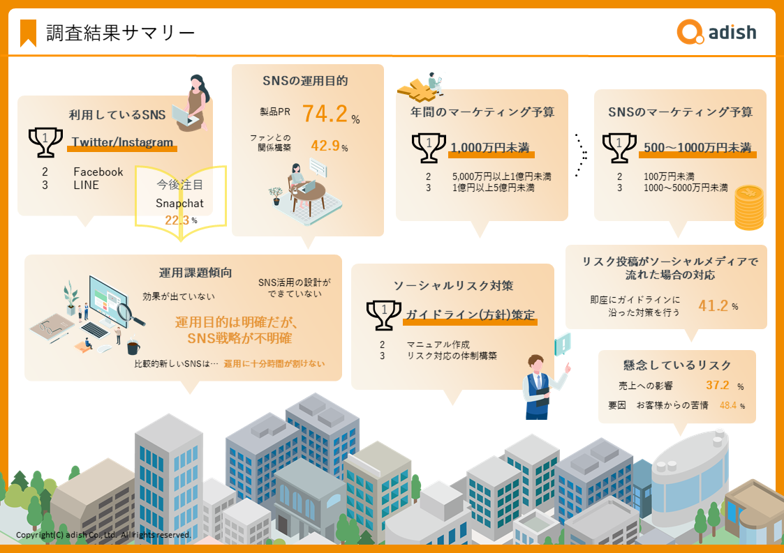 アディッシュ、企業のSNS利用とソーシャルリスク対策の実態調査を実施(2022年版)