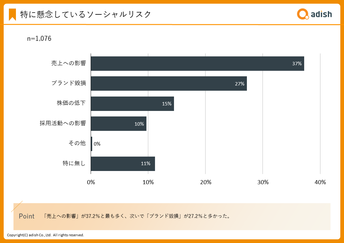 ・ソーシャルリスク発生時の懸念のトップは「売上への影響」で約37%