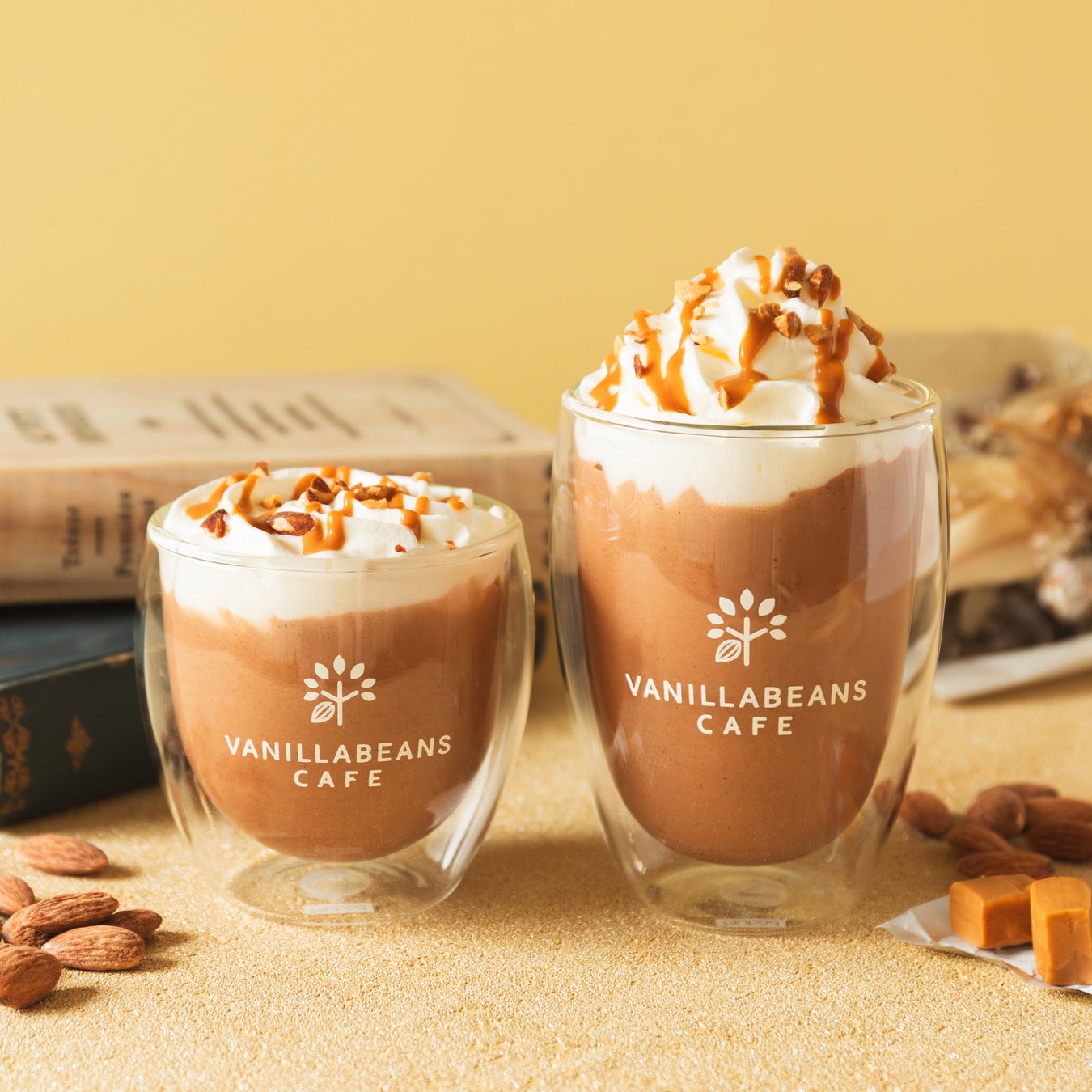 自家製チョコレートにアーモンドペーストを加えた、ナッツの風味豊かなチョコレートドリンクが今年リニューアルして再登場。トッピングには、ホイップクリーム、じっくり煮詰めたキャラメルソース、香ばしいアーモンドクラッシュを散らしました。