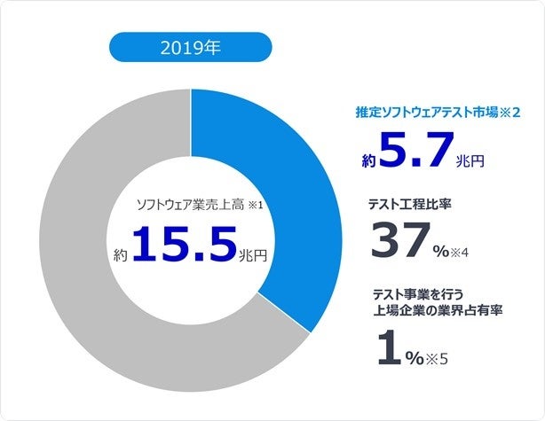 売上成長率60.5%達成の要因は、日本のソフトウェア開発工程における企業構造と品質問題にあります。ソフトウェア開発におけるテスト工程は、約37%(※2)を占めるとされています。