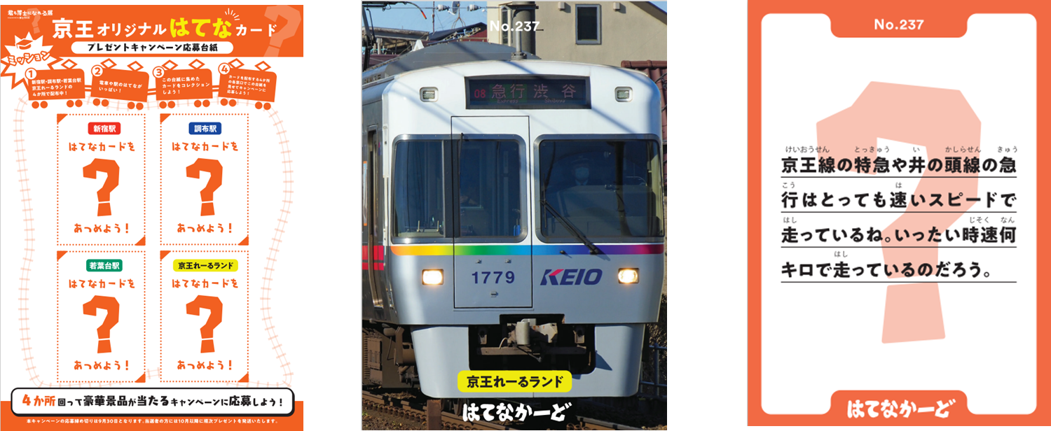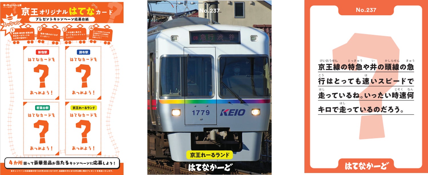 全4か所に設置されたカードラック(新宿駅・調布駅・若葉台駅・京王れーるランド)からオリジナルはてなカードを集めると豪華景品が当たるキャンペーンにご応募いただけます。更に、博士展のチケットを京王れーるランドやトリエ調布で提示すると各種特典がございます。