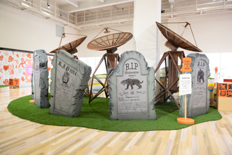 はるか昔に絶滅した動物たちのお墓が立ち並ぶARフォトブース。