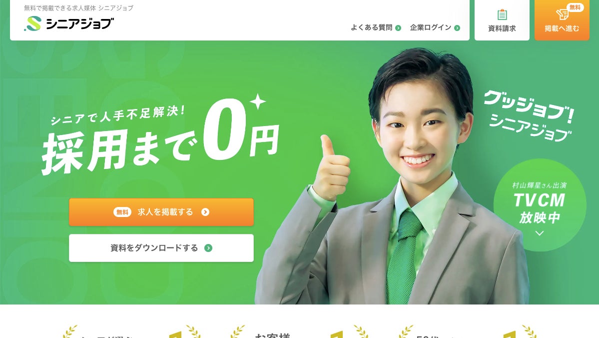 50歳以上の採用に特化した求人サイトです。掲載無料の完全成果報酬型で成果報酬の金額も抑えているため、低コストで即戦力を採用できるサービスです。
