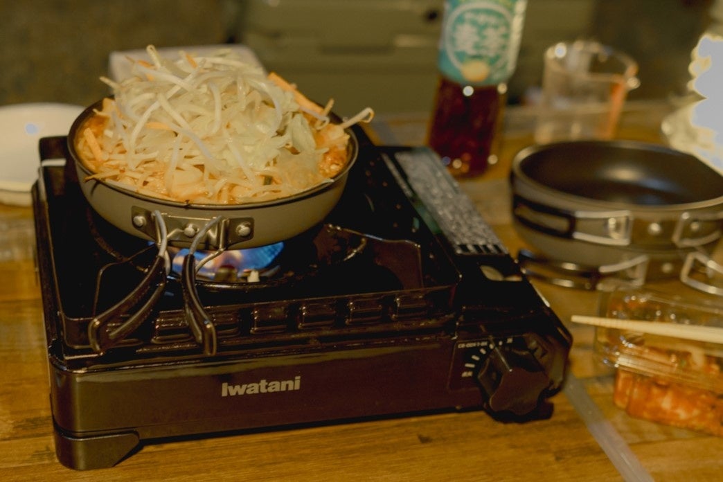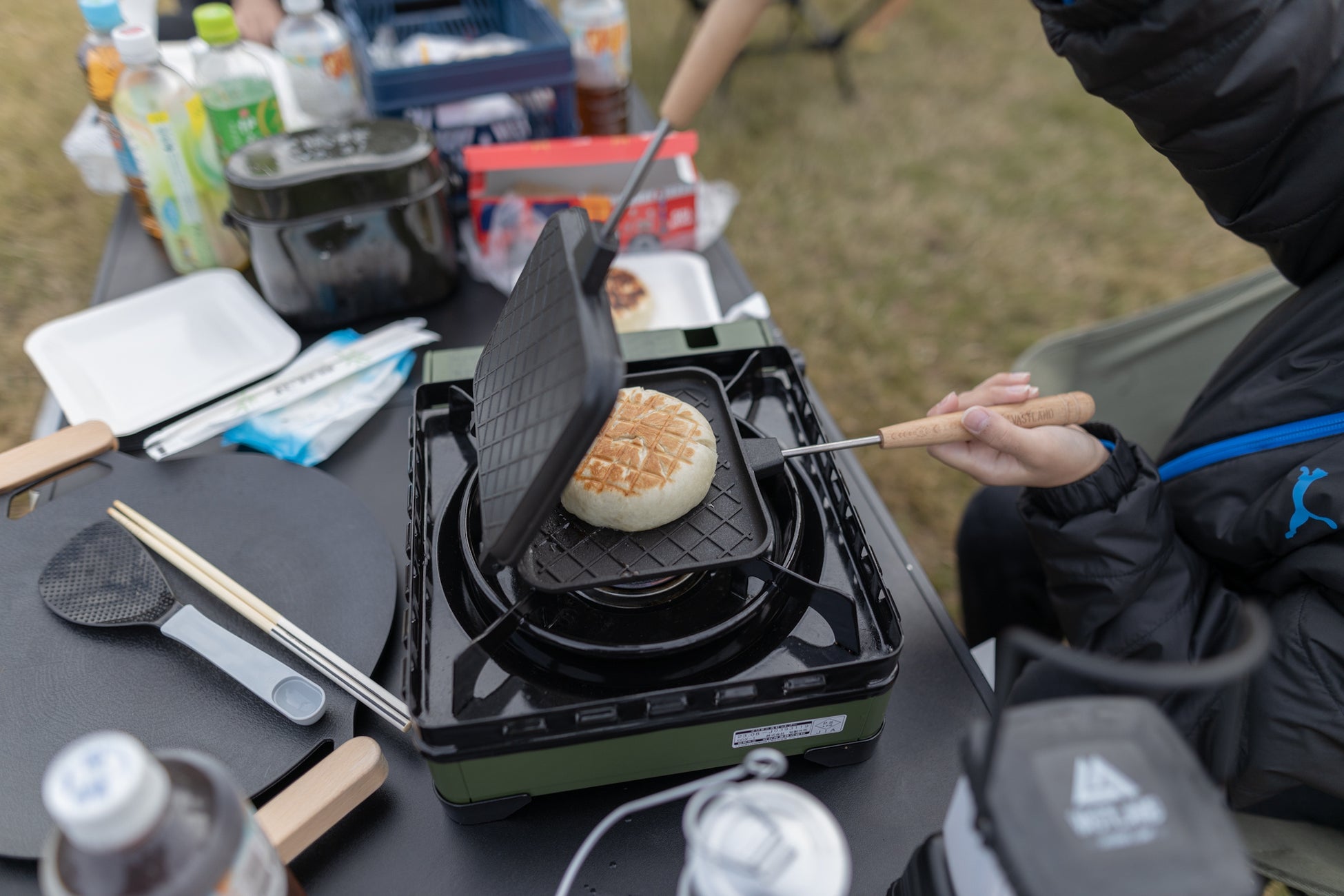 VASTLANDのキャンプギアを使っての宿泊体験だけでなく、岩谷産業様よりご提供いただいた、風に強いアウトドアこんろ「イワタニカセットフー "タフまる"」と当社商品の調理器具を用いて、キャンプ料理を楽しんでいただきました。