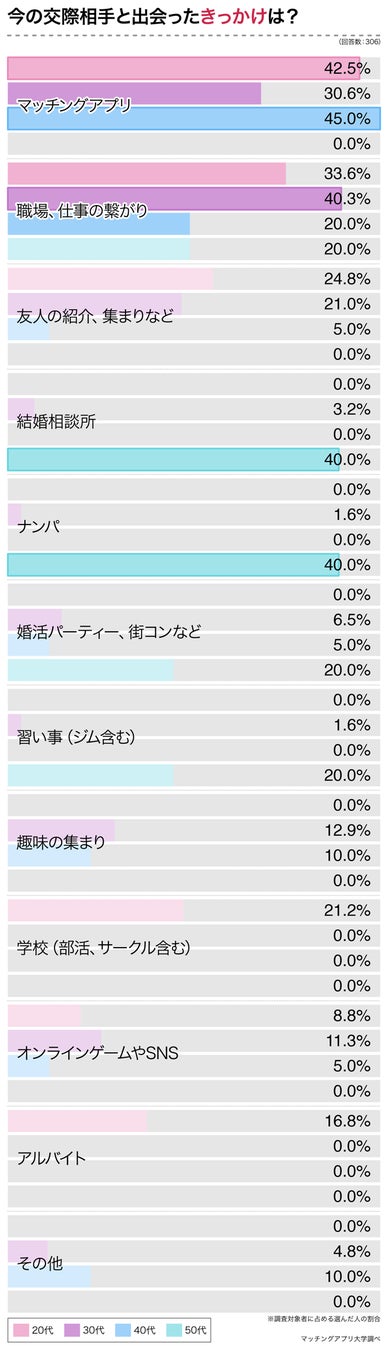 - 20〜40代は「マッチングアプリ」での出会いが上位に