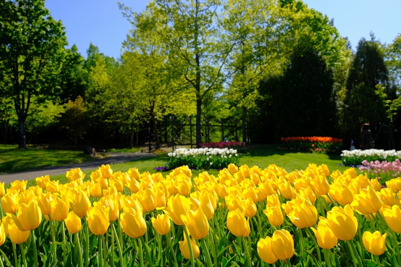 今年は156品種約25万本のチューリップがカントリーガーデンの丘を彩ります。