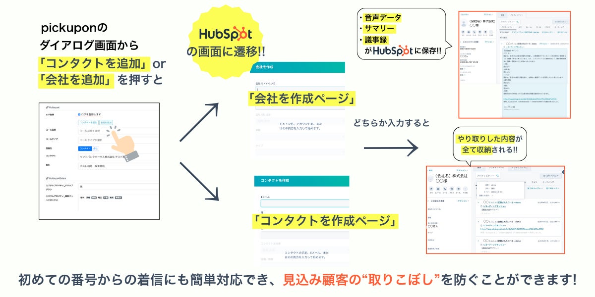 【新機能リリース】pickupon、HubSpot連携を強化!知らない番号からの着信もその場で確認・顧客登録、営業チャンス・チャーンリスクの取りこぼしをゼロへ!