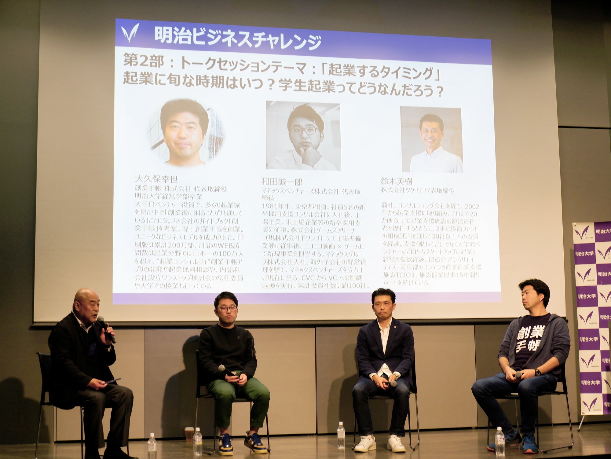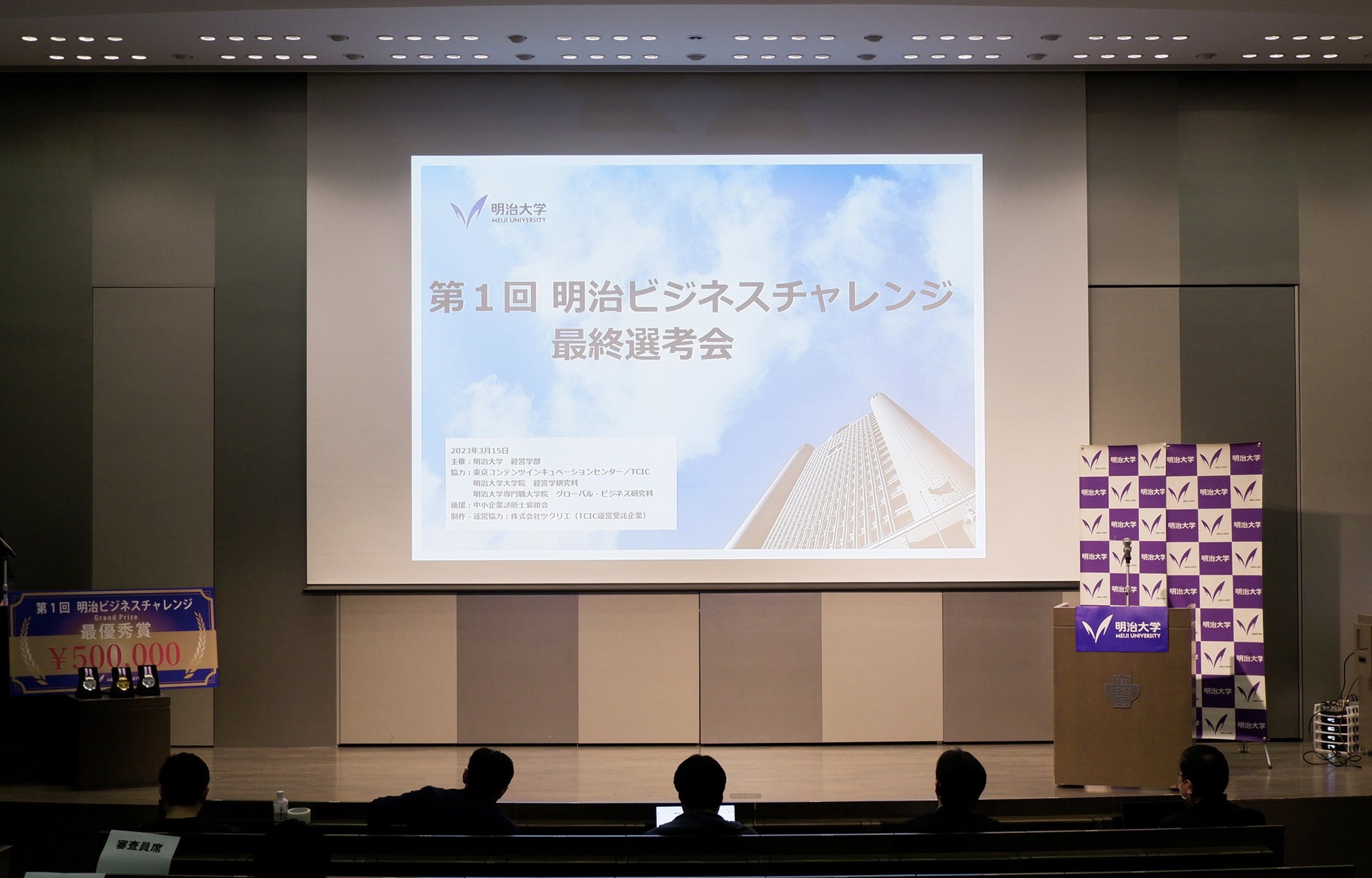 「価値創造人材の発掘」、「持続的な明治大学発ベンチャーの育成」、「総合大学ならではの、幅広い分野におけるイノベーション事業開発のロールモデルを築く」、「社会や文化に貢献するビジネスモデルの創出」をテーマに、今年初めて開催されました。