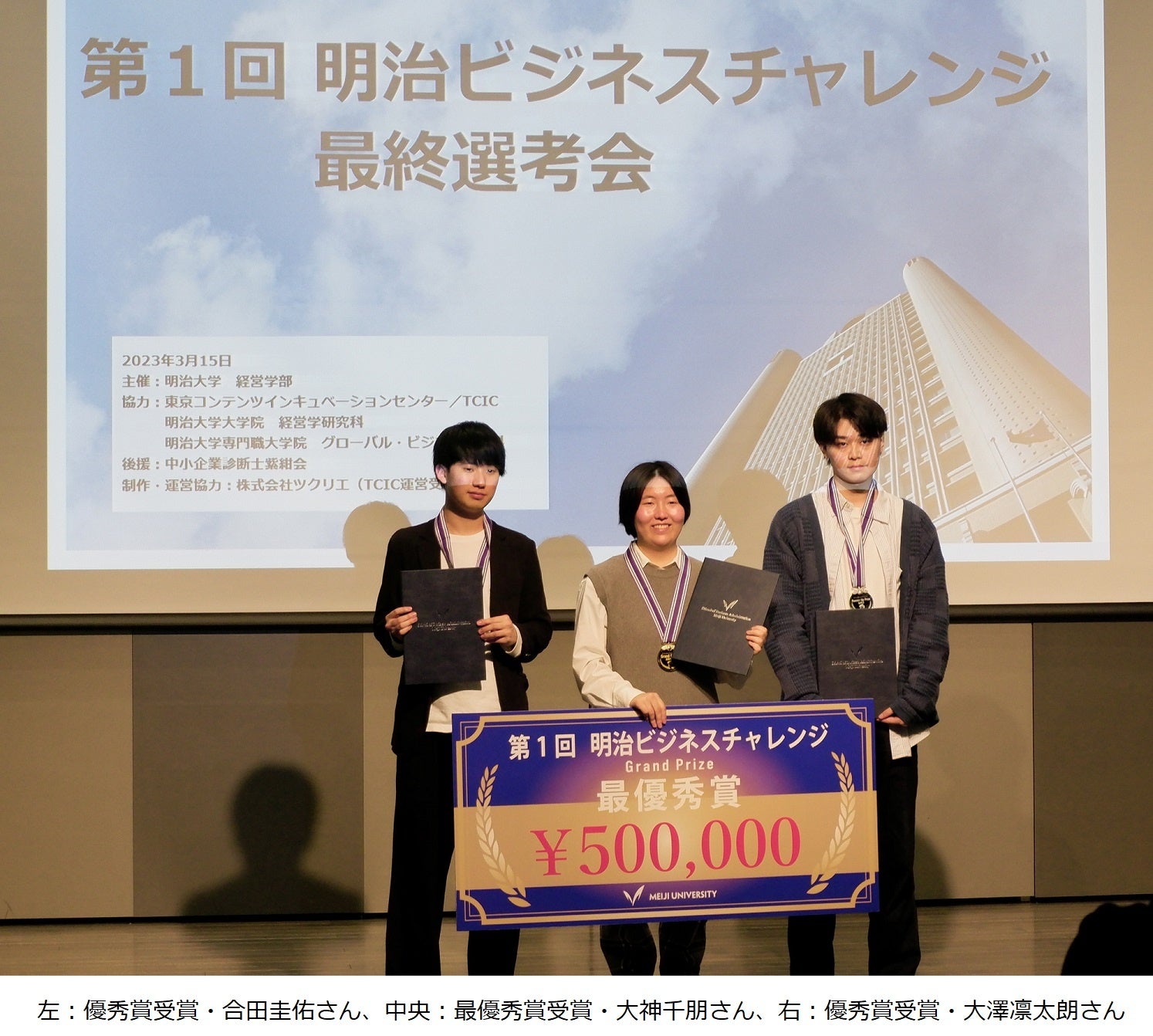 株式会社ツクリエ(本社:東京都千代田区 代表取締役:鈴木英樹 以下、ツクリエ)が運営協力し、明治大学経営学部が主催する学内ビジネスコンテスト「第1回明治ビジネスチャレンジ」(以下、本コンテスト)の最終選考会が、3月15日(水)に明治大学駿河台キャンパスで開催されました。