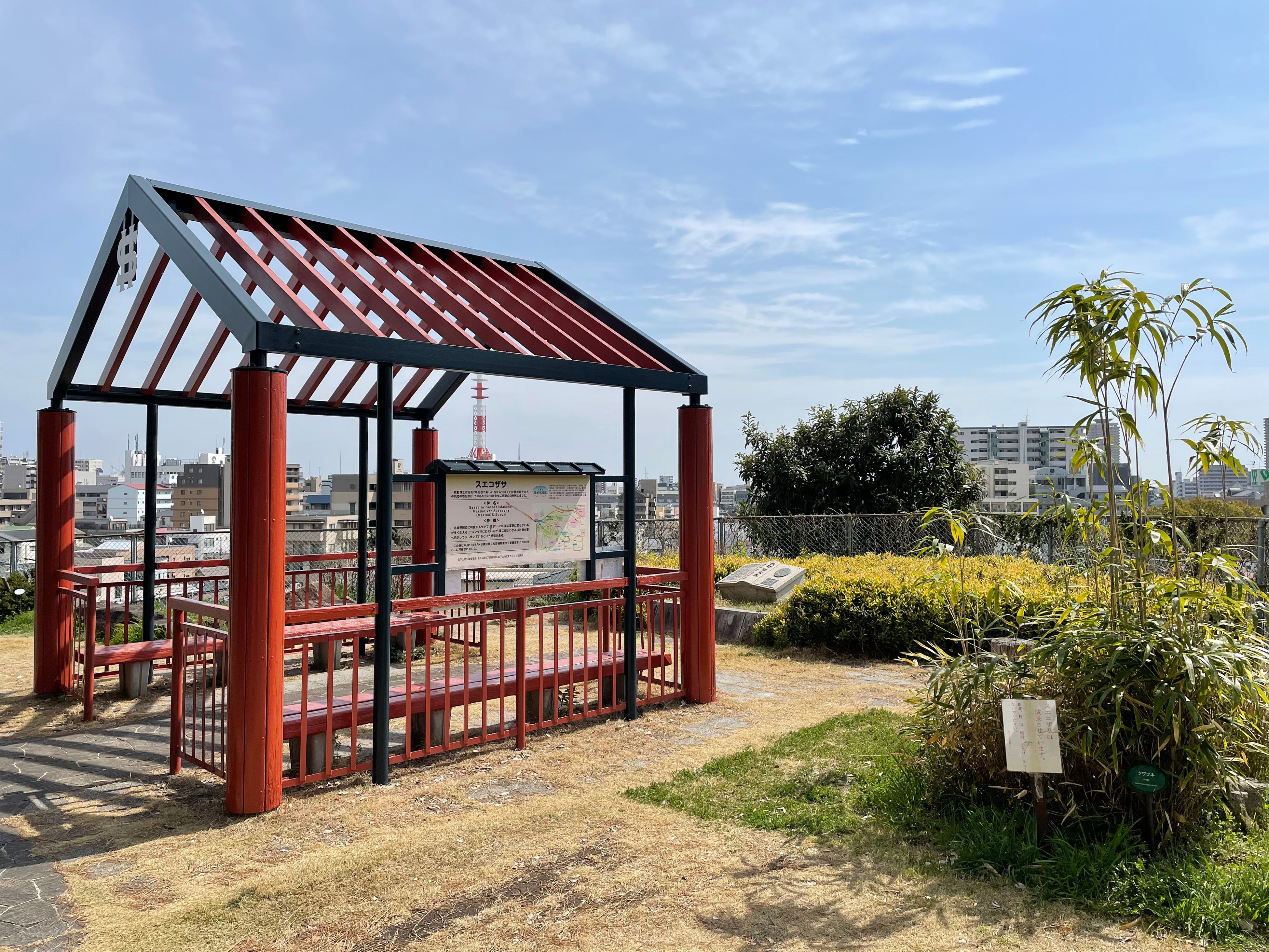はじめに訪ねるのは、池長植物研究所があった「会下山小公園」。現在は記念碑が置かれており、博士ゆかりの植物が植栽されています。