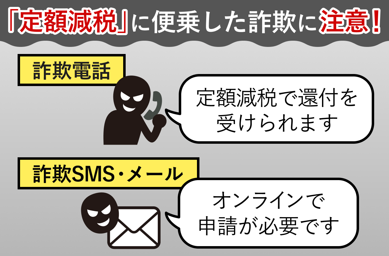 2024年6月1日より、定額による所得税の特別控除(定額減税)が実施され、これに便乗した詐欺への懸念が高まっています。国税庁は、「定額減税に関する不審な電話やメールにより、銀行の口座情報を聞き出そうとする事例や、還付手続のためとウソを言ってATMを操作させ振込みを行わせる事案が発生している」と注意喚起しています。