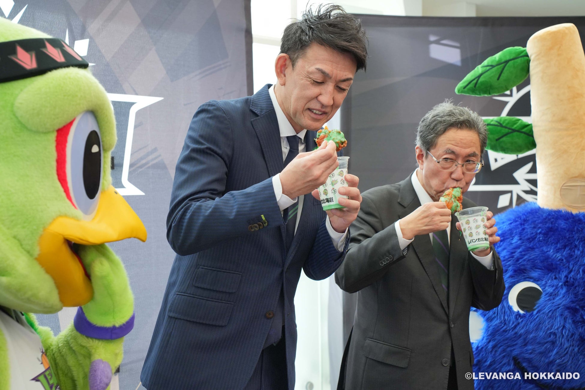 今回の協定は、レバンガ北海道の 新アリーナグルメである「緑ざんぎ(仮称)」を開発したところから始まりました。