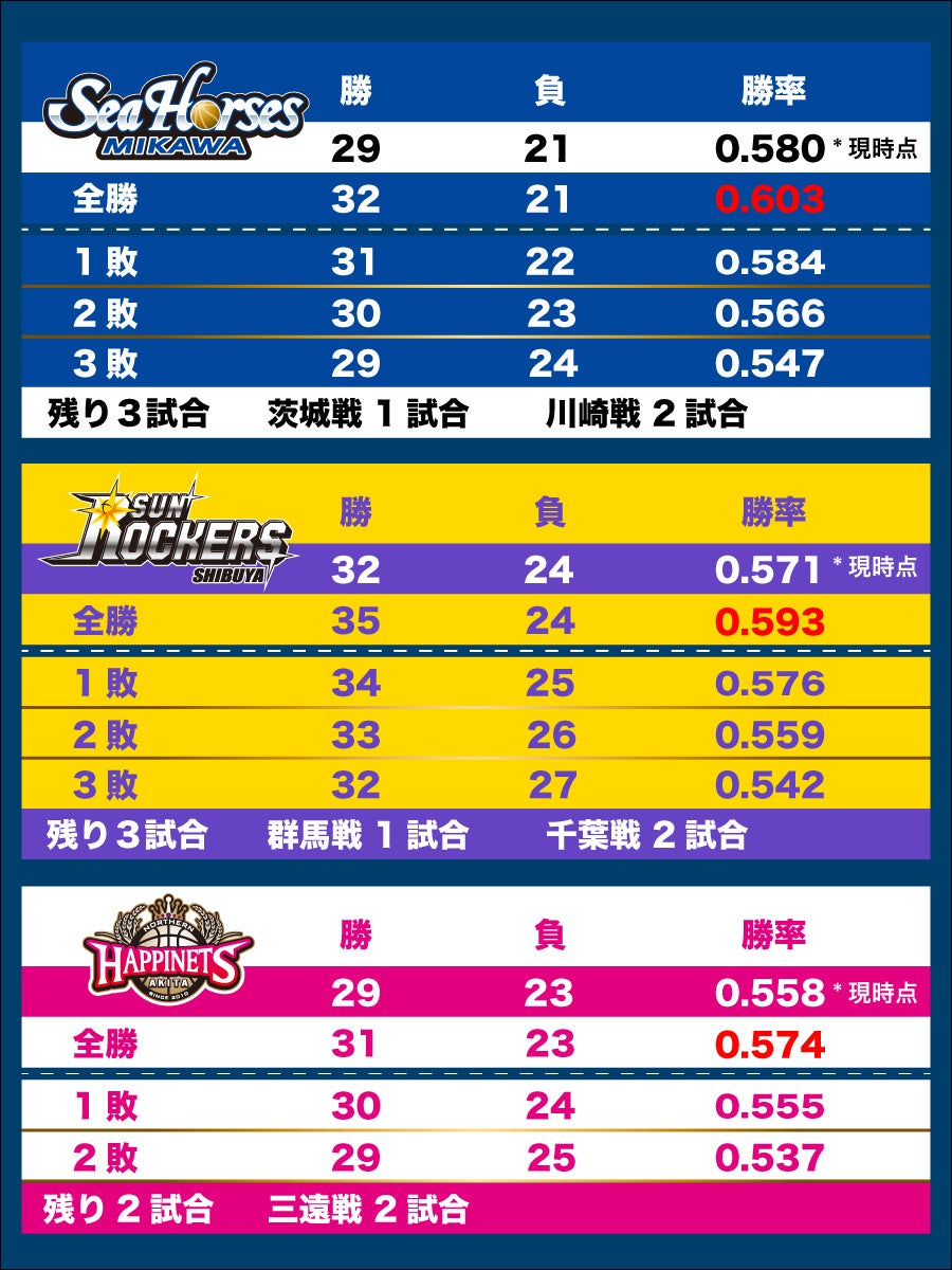 サンロッカーズ渋谷 勝率.571(32勝24敗)